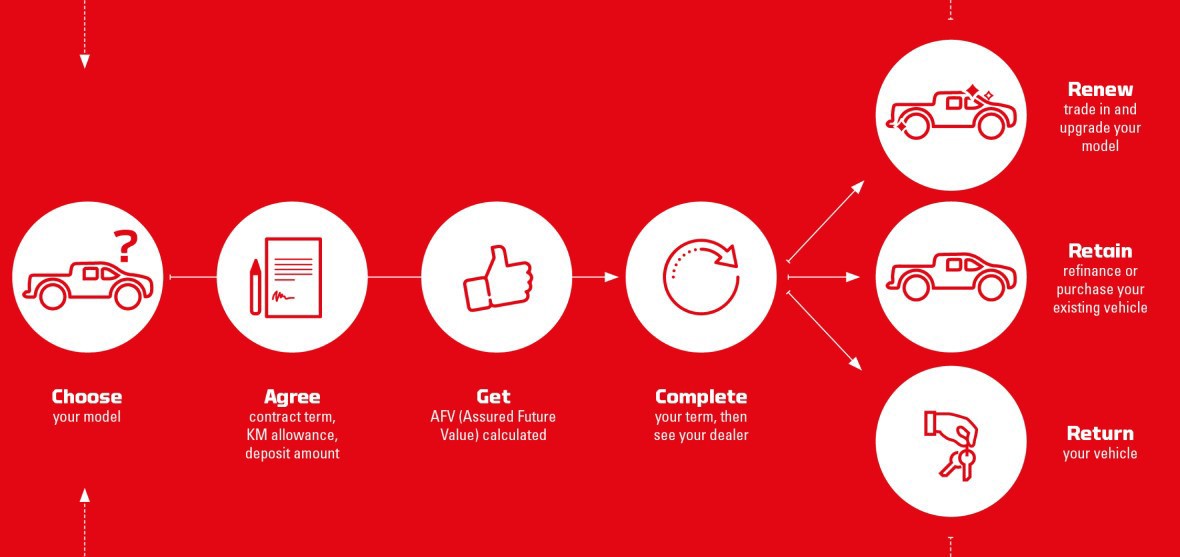 - Return – if you decide to return the vehicle, then provided you’ve made all your regular payments, the vehicle meets fair wear and tear and is within the agreed kilometre allowance, you won’t need to pay the final payment, just the return fee.